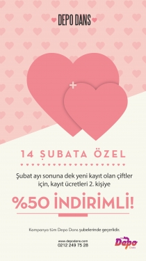 DEPO DANS’ TA ŞUBAT SONUNA KADAR YENİ KAYIT OLAN ÇİFTLERE 2. ÜYELİK %50 İNDİRİMLİ…