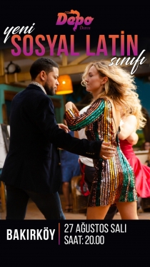 DEPO DANS BAKIRKÖY’DE YENİ SOSYAL LATİN SINIFIMIZ 27 AĞUSTOS SALI GÜNÜ 20:00’ DE BAŞLIYOR! Uygun fiyatlar ve öğrencilere özel indirimlerle Depo Dans kalitesi ile dans etmeyi öğrenmek istemez misiniz? -Dersler Salsa ve Bachata ağırlıklıdır. Ayrıca Cha Cha ve Casino Rueda dansları öğretilmektedir. Derslerde müzik ve ritim çalışması da yapılmaktadır. -Dersler haftada 1 gün 1 saat olup, Pazar günleri 15:00-19:00 arası pratik çalışmalarımız yapılmaktadır. -Derse partnerli katılma zorunluluğu yoktur. -Derslerde rahat kıyafetler, temiz ve yumuşak ayakkabı giymenizi tavsiye ederiz. Sivil: 10 haftalık 500 TL (Nakit) / 560 TL (K.Kartı) Öğrenci: 10 haftalık 450 TL (Nakit) / 500 TL (K.Kartı) Ayrıntılı bilgi için : 0212 572 65 72