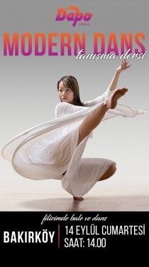 DEPO DANS BAKIRKÖY’ DE MODERN DANS TANIŞMA DERSİ! 14 EYLÜL CUMARTESİ GÜNÜ SAAT 14:00 ‘DE KAÇIRMAYIN!! (FİLİZİMDE BALE VE DANS) Hareket yelpazesi çok geniş ve yaratıcılığa açık olan Modern Dans, teknik açıdan diğer dans türlerini yapmayı kolaylaştıracak eğitim programı ve doğallığı ile tam olarak özgür ruhlara göre! -Bedenin keşfi, -Doğru kullanılması, -Denge ve koordinasyonun sağlanması gibi fiziksel gelişimleri destekleyen bu dans sayesinde kendinizi hiç olmadığınız kadar iyi hissedeceksiniz. - Yaş sınırlaması yoktur. KATILIM ÜCRETSİZDİR. Ayrıntılı bilgi için: 0212 572 65 72
